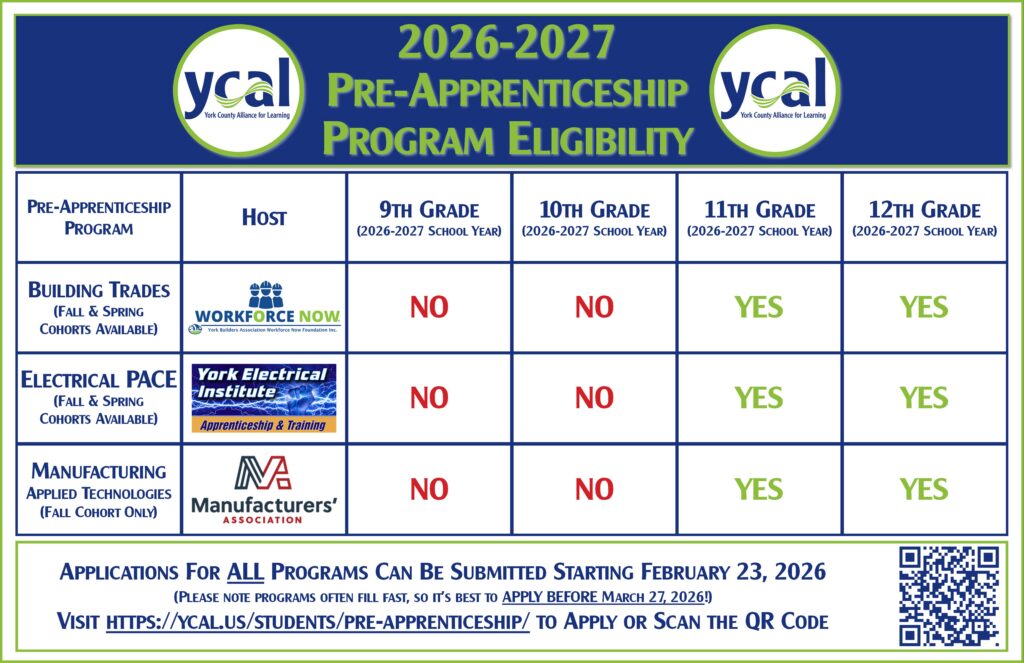 The YCAL Pre-Apprenticeship Program is designed for High School Students enrolled at YCAL’s Partner Schools, who are considering pursuit of an Apprenticeship in a chosen trade after graduation. YCAL offers various Pre-Apprenticeship options through several different training partners.